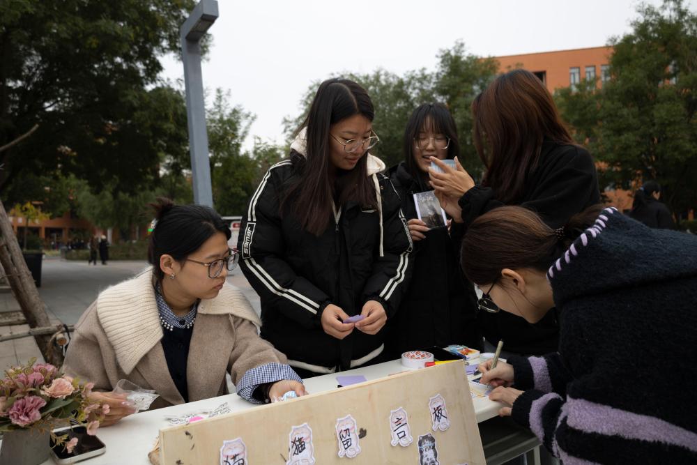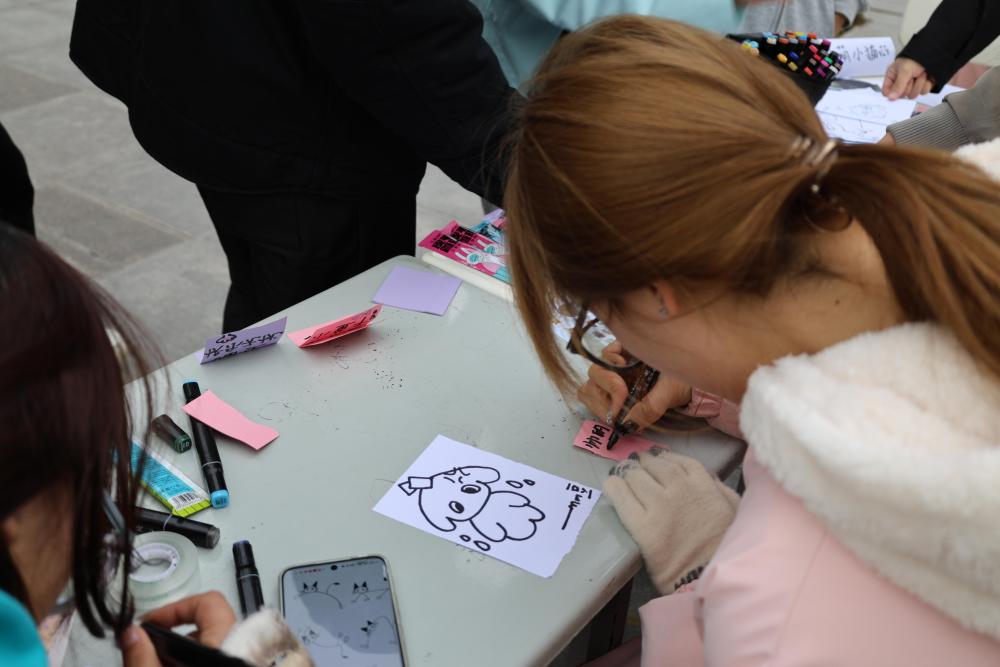 随着气温降低,流浪猫狗生存难度加大。活动以“为校园流浪猫创设IP、评选团宠”为核心,同步普及流浪猫保护与科学喂养知识,让专业实践与爱心守护双向发力。活动现场由学生分为四个小组协同运作,互动区域人气高涨。IP创设画像组聚焦“为流浪猫造IP”,不少参与观众到场便惊喜表示“认识它!”凭借熟悉的记忆加上对现场照片仔细观察,用画笔为它们设计专属形象与IP名称,助力猫咪“出圈”。