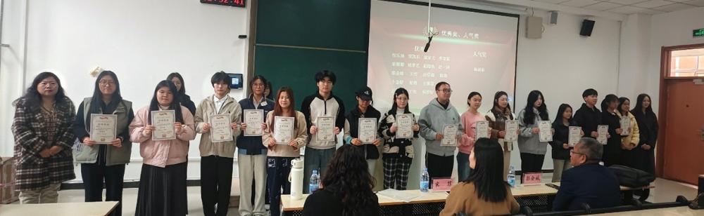 紧接着进行笔记大赛结果宣布及颁奖环节,由李晶主任逐一公布优秀奖、人气奖、三等奖、二等奖、一等奖获奖名单,与会领导分别为获奖学生及指导教师颁发荣誉证书。
