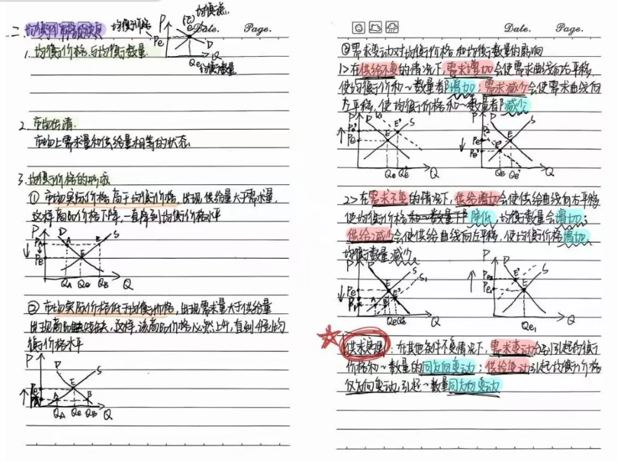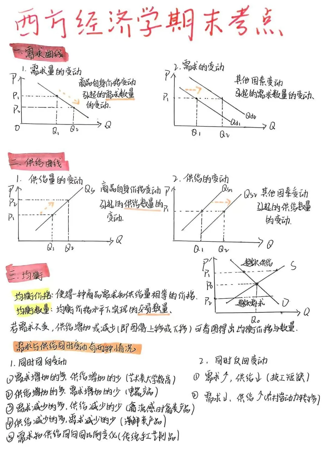 在西方经济学的课程学习里,笔记是我探索经济理论世界的重要工具。该课程的难点就是如何能够清晰的区分概念,模型,案例,这个时候就需要用不同颜色标注笔记来帮助我们理解。这些笔记是学习西方经济学路上的珍贵财富,帮我搭建起理解经济运行逻辑的框架,也让我明白,严谨梳理与总结,是掌握这门学科的关键一步。