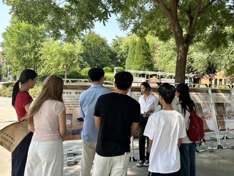 在A座教学楼前广场,《石家庄历史文化陈列》展览以丰富的图文和实物,系统展示了石家庄从古至今的发展历程。石家庄市博物馆的专业讲解员为师生提供了生动的公益讲解,从历史事件、文化特色到文物背后的故事,深入浅出地解读了石家庄的文化底蕴。现场师生纷纷表示,这种互动式的学习方式让他们对本土历史有了更深刻的认识,也激发了探索文化遗产的兴趣。