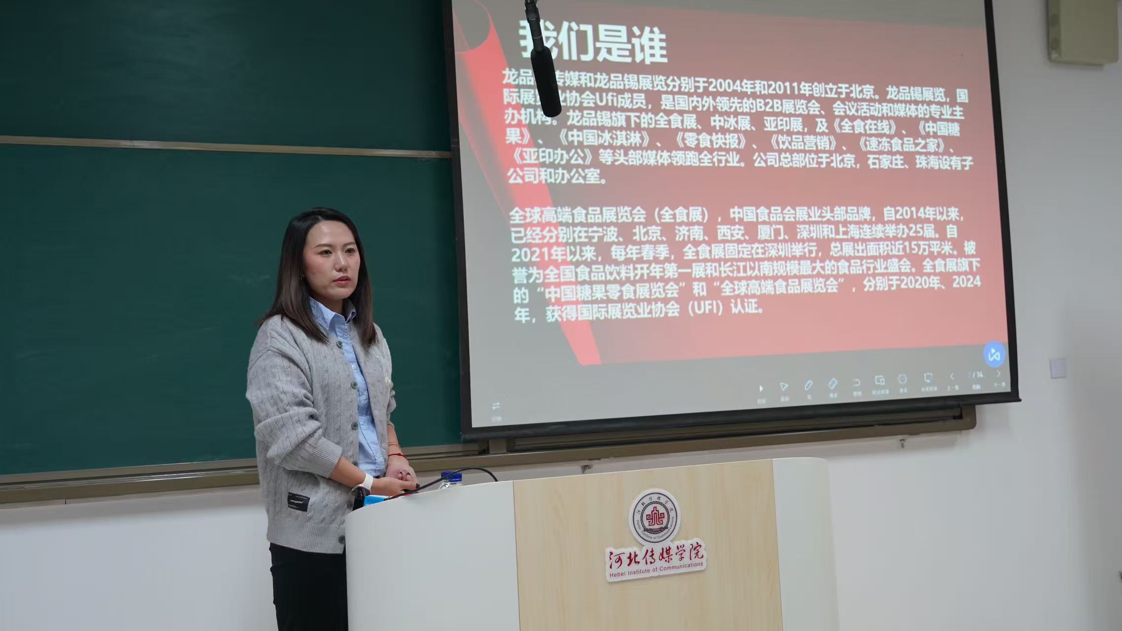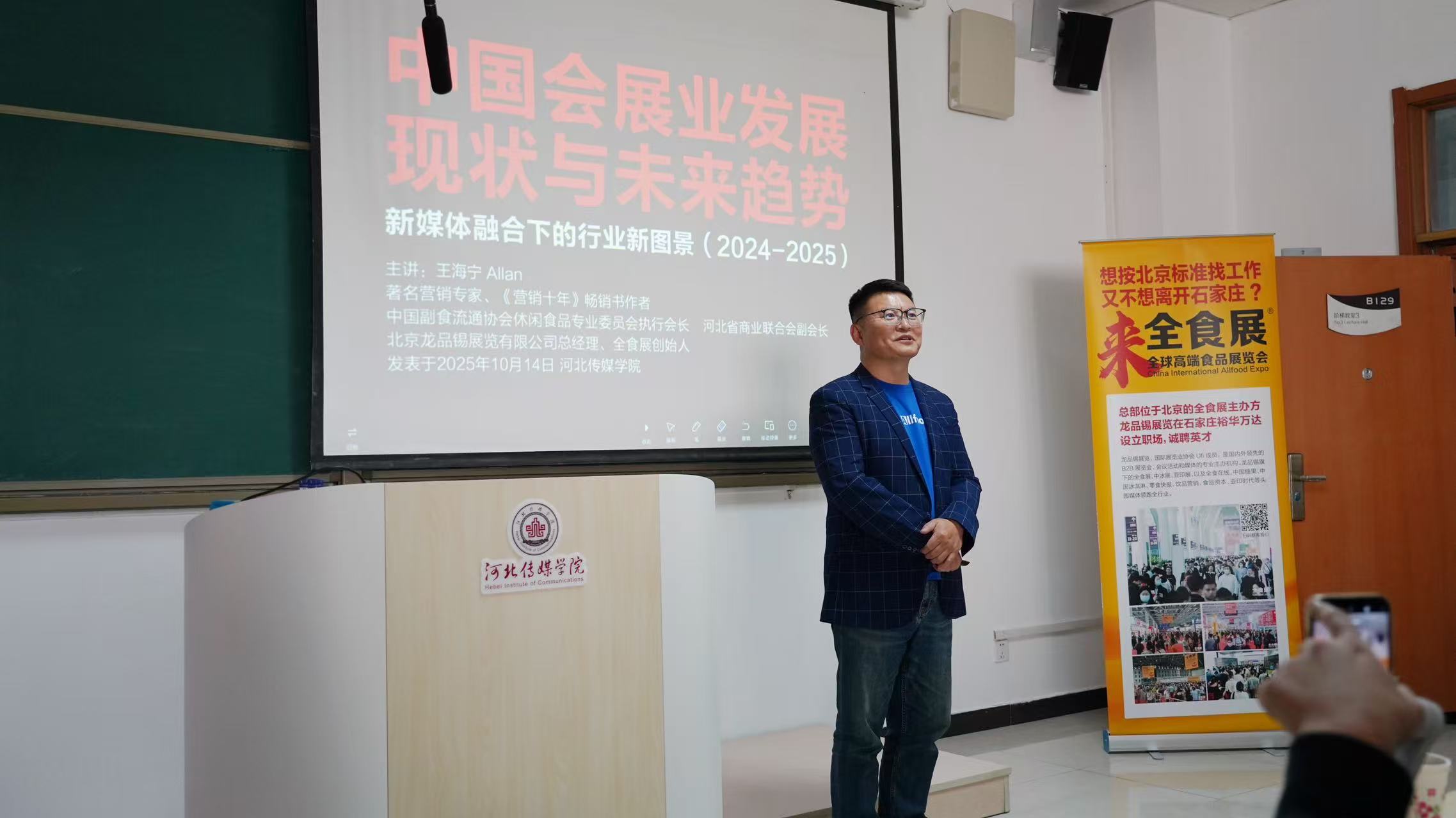 宣讲会上,王海宁先生分享了其核心经营理念——“帮助企业家在销售额后面加个0”,并系统阐述了会展经济在品牌赋能与资源整合中的核心价值。他特别指出,龙品锡旗下的“全食展”等品牌已成为国际认证的行业标杆,其业务高度契合我校,尤其是文化产业管理学院学子的专业知识应用场景,是理想的理论与实践结合平台。
