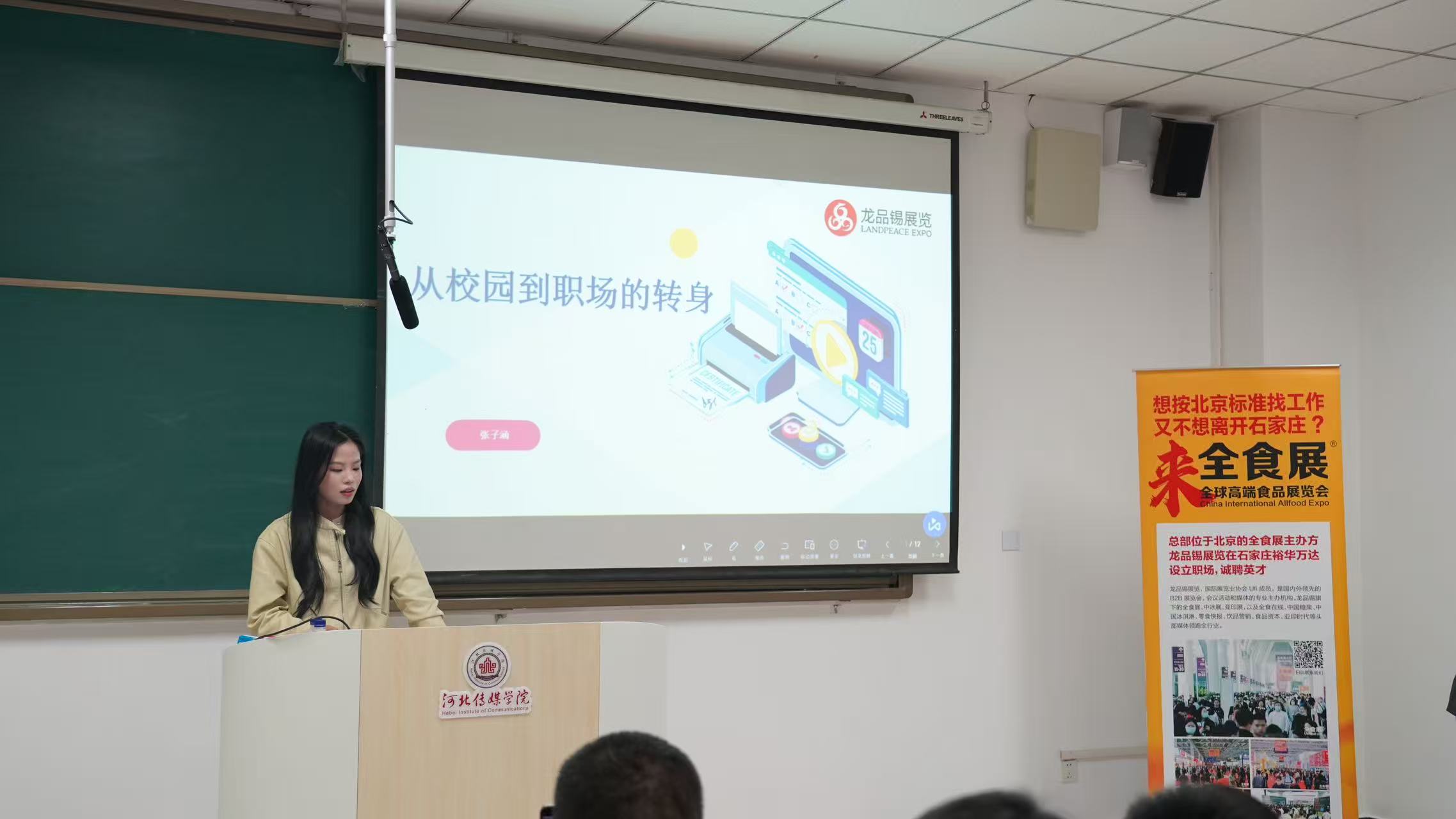20251014日,国内会展行业领军企业——北京龙品锡展览有限公司校园宣讲会在我校成功举行。公司创始人王海宁先生以“链接未来,与你共成长”为主题,为现场学子带来了一场内容充实、视野开阔的行业分享与职业规划课。