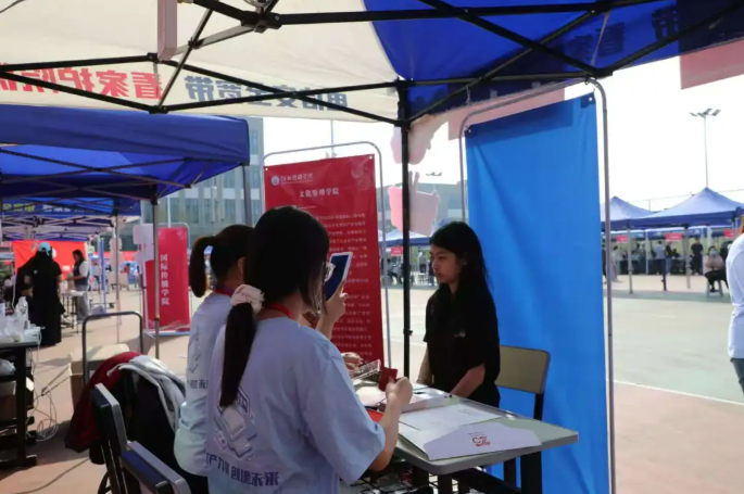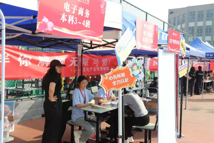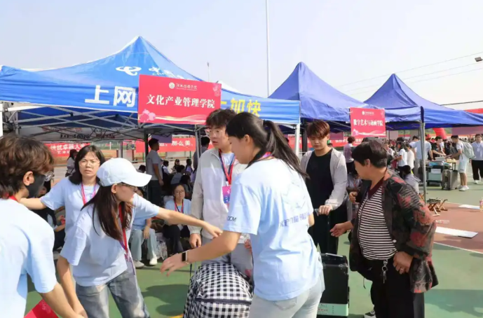 手持学院牌的志愿者,热情地为新生讲解校园布局、专业规划,让“迷茫感”变成“归属感”;