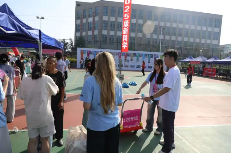抵达现场后,随着新生陆续到来,大家迅速投入工作:志愿者们举着醒目的专业牌守在路口,目光紧紧追随着往来的人流。一旦看见拖着行李箱、带着些许迷茫的新生,便立刻笑着迎上去:“同学你好!文管专业这边走!”话音未落,便主动接过对方手中沉甸甸的行李,陪着往宿舍方向走。一路上,此起彼伏的答疑声从未停歇:“学姐,专业课有实践活动吗?”“学长,社团招新啥时候开始呀?”志愿者们总会放慢脚步,耐心地把校园琐事、专业细节一一讲清,偶尔还会分享几句“过来人”的小经验。每当看到新生眼里的迷茫渐渐褪去,被期待与憧憬取代时,便觉得所有的奔波与忙碌,都有了最温暖的意义。